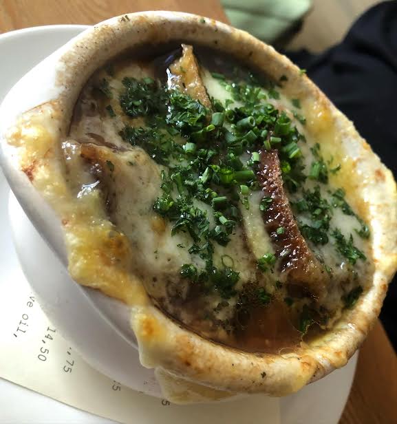 Starting with the house rose and red wine, a half and half board of pate de campagne and pate de foie de poulet, the escargorts with garlic butter, the french onion soup and oysters on the half shell. Delicious!